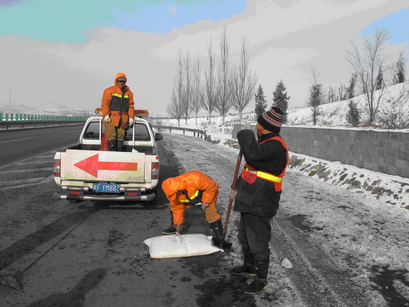 從11月10日早晨開(kāi)始,養(yǎng)護(hù)人員全部就位待命,各灑布車裝滿融雪劑,準(zhǔn)備隨時(shí)灑布。公司安排了兩輛巡查車,分別向東西兩個(gè)方向開(kāi)始不間斷巡查,及時(shí)掌握最新雪情動(dòng)態(tài)。晚上,隨著大雪降臨,養(yǎng)護(hù)部門(mén)本著“先重點(diǎn)路段,后一般路段”的原則開(kāi)始在全線噴灑溶雪劑,以確保匝道、爬坡路段降雪及時(shí)融化,避免造成車輛“趴窩”,影響通行。到11日白天,又安排人員對(duì)重點(diǎn)路段進(jìn)行人工灑布,并派4臺(tái)除雪車上路推鏟積雪。12日,在降雪停止后,又安排200多人上路徹底清除路面積雪。由于除雪及時(shí),京張高速一直處于暢通狀態(tài),除由于進(jìn)京方向八達(dá)嶺高速積壓車輛造成車輛擁堵到京張路段,為保證安全,高速交警暫時(shí)封閉上口外,京張高速?zèng)]有因降雪而封閉,做到了省廳要求的24小時(shí)雙向四車道暢通,48小時(shí)路面無(wú)積雪。