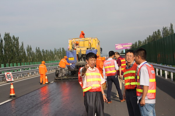 京張高速公路2015年路面微表處和標線補劃工程經(jīng)過充分的施工準備于8月6日正式開工。王啟成總工程師到施工現(xiàn)場檢查了施工情況,對工程的質(zhì)量控制和安全保暢工作表示滿意。本工程是今年迎國檢的重點施工項目之一,總投資249.94萬元,預計8月30日前全部完工。(王喜會)。