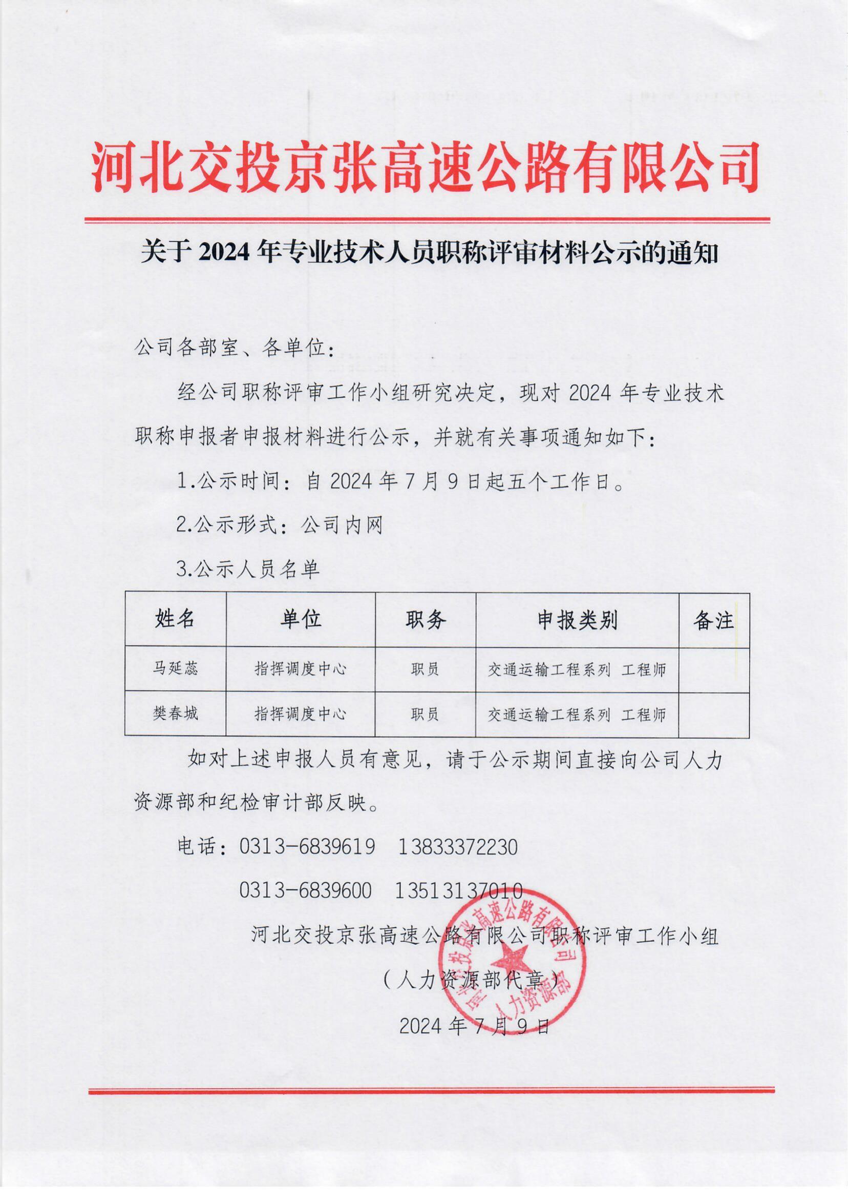 關于2024年專業(yè)技術人員職稱評審材料公示的通知